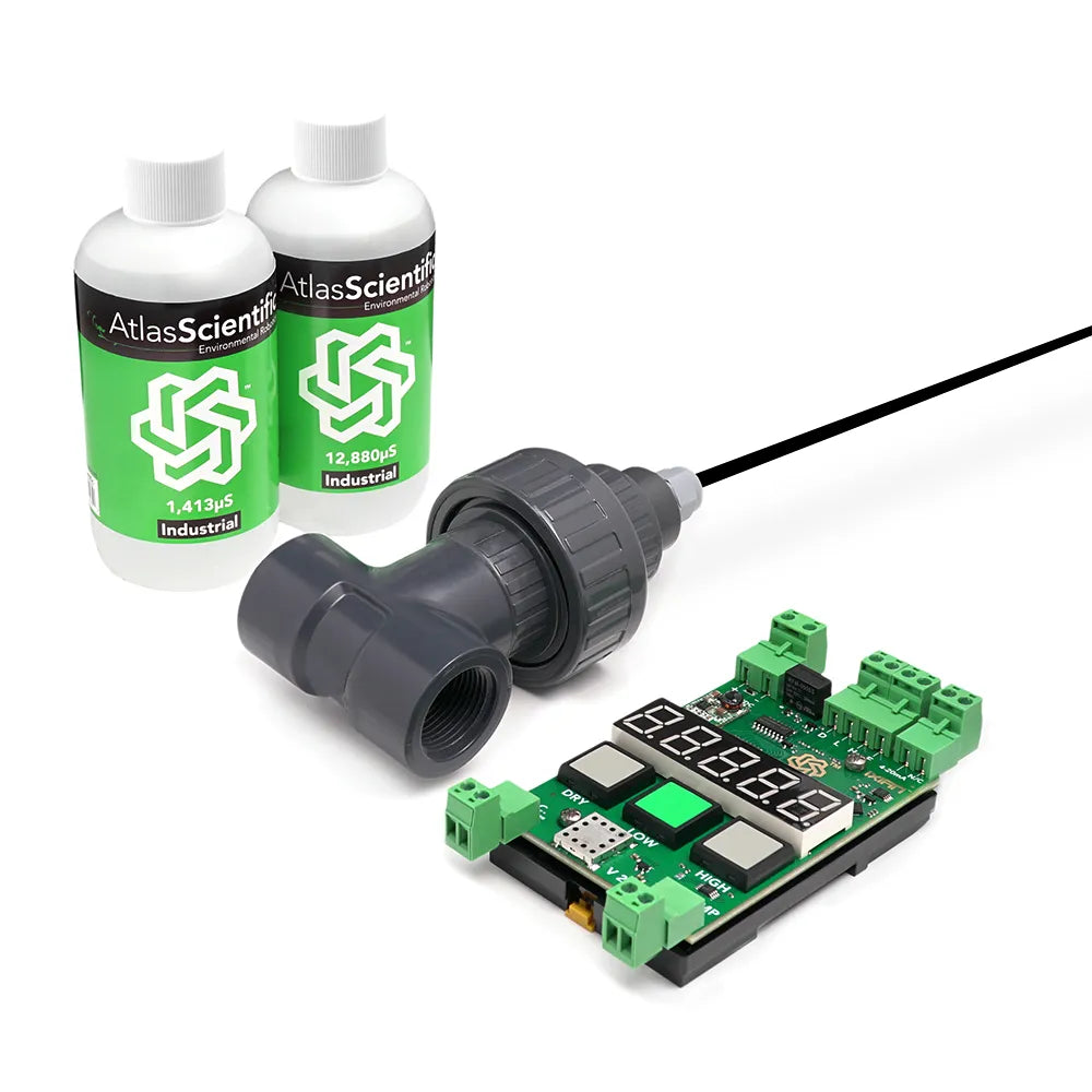 Are you working with a PLC and aren’t sure what parts are right for you? Let us help you. This is the Atlas Scientific, Industrial Conductivity kit. It comes with everything you need to take high accuracy, interference-free readings with a PLC. The industrial strength conductivity probe is ready for the job, whatever it may be. This probe doesn’t care, from batch process chemical production to wastewater treatment. You can use it for anything. The DIN rail mount and wide operating voltage makes it easy to install. The 4-20mA data output and display makes it easy to read. And the simple calibration protocol gets you up and running in no time.