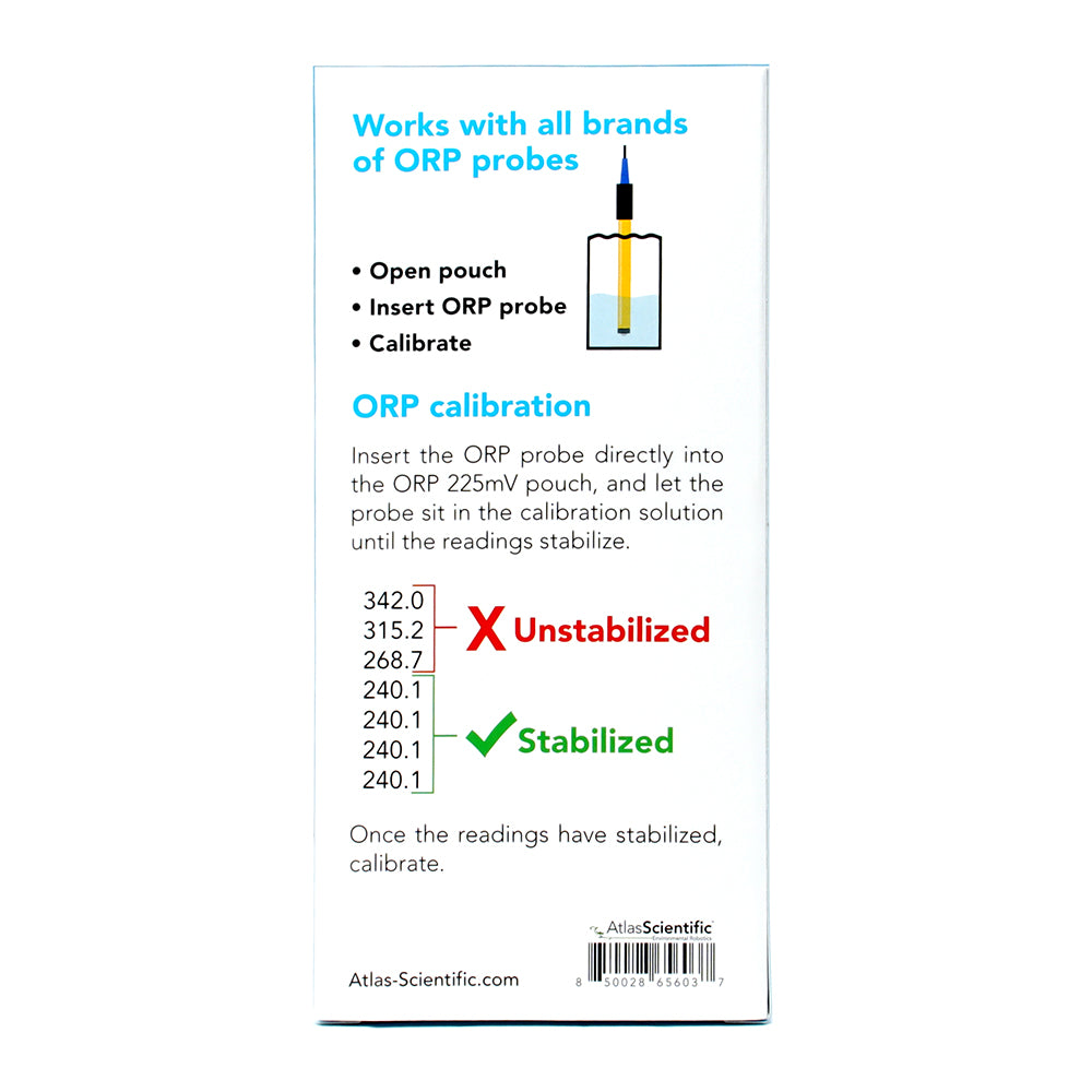 Atlas Scientific ORP calibration solution, also know as Zobells solution maintains a constant 225mv, perfect for ORP probe calibration. Storing it below 16°C or 60°F will greatly extend its shelf life.